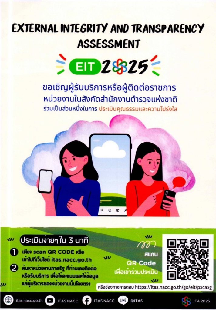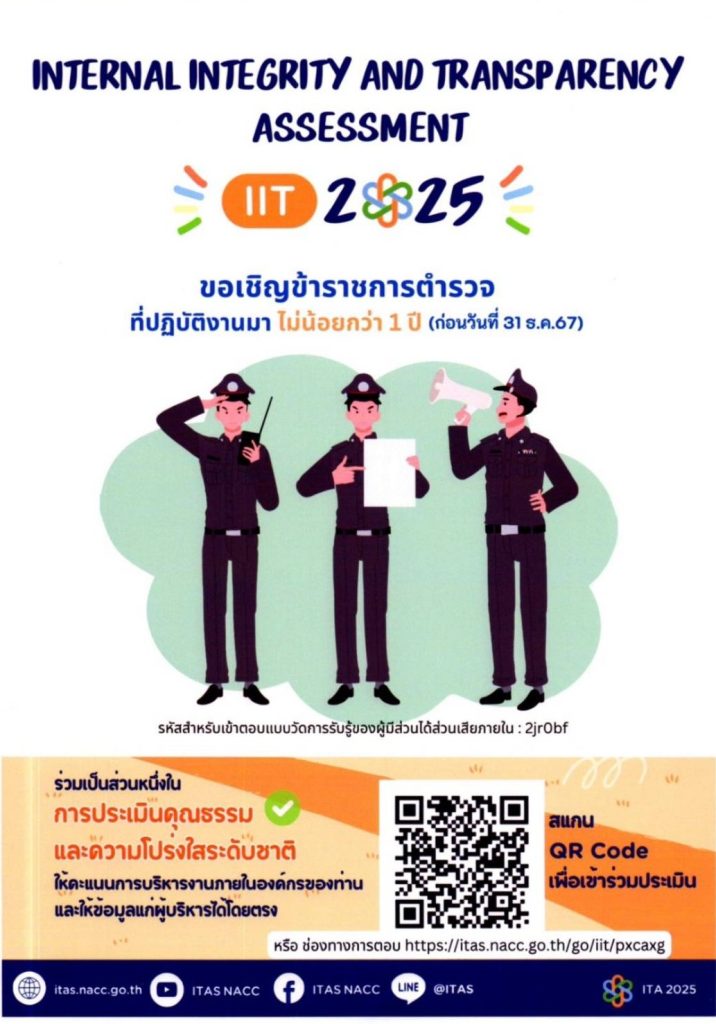 ขอเชิญชวนข้าราชการตำรวจและผู้รับบริการหรือผู้ติดต่อของหน่วยงานรัฐ ร่วมประเมินคุณธรรมและความโปร่งใส